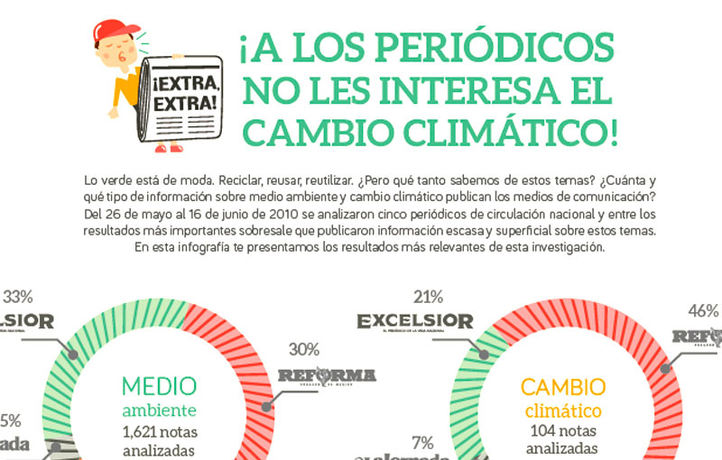 Un campo importante de observación para el observatorio de medios ha sido cómo es que los medios de comunicación abordan el tema del cambio climático desde una perspectiva periodística. A lo largo de los años se han realizado diversos análisis de contenido y de discurso sobre piezas periodísticas enfocadas al cambio climático. LEER MÁS